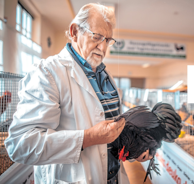Denn den Vereinsmitgliedern gehe es um die möglichst originalgetreue Erhaltung alter Rassen, sei es das Altsteirer Huhn, die Schildtaube, das Brakel- Huhn, die schwarze Augsburger Henne oder der gesperberte Dominikaner. „Natürlich entwickeln Züchter über die Jahre ein profundes Wissen darüber, welche Merkmale die jeweilige Rasse ausmachen. Aber man mag ja seine ei-genen Tiere, wünscht sich auch, dem Ideal nahe zu kommen, und da kann es schon passieren, dass eine gewisse Selbstverliebtheit den Blick verstellt und ich nicht sehe oder nicht sehen will, wo Merkmale abweichen. Deswegen ist die Sicht von außen durch unabhängige Richter umso wichtiger“, sagt Steenken. Die etwa 1350 Mitglieder in den 19 Vereinen, die zum Kreisverband Ostfriesland- Papenburg zählen, verstehen sich als „Erhaltungszüchter“, also diejenigen, die alte, nicht selten gefährdete Rassen vor dem Aus- sterben bewahren – in der Erscheinung möglichst so, wie sie dem ursprünglichen Aussehen entspricht. In Ostfriesland hat die Schau-Saison jetzt wieder begonnen.
